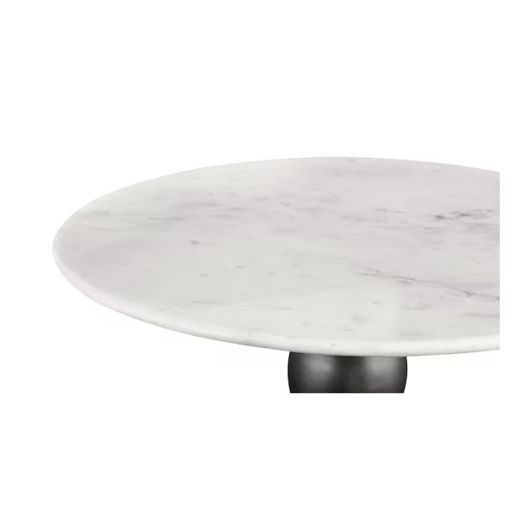 Your dining space might be the ideal place for this captivating mixed-material Coventry Round Dining Table. Available with either a 48” or 54” tabletop diameter, the Coventry features ½” thick solid Banswara marble anchored to a cast aluminum base in a textured, bronze finish. The table’s round shape and organic styling lends itself to gracious seating in almost any modern space, with the pedestal base leaving room to gather chairs around in easy comfort for all. The Coventry Collection also offers the opportunity to pair your show-stopping dining room table with an occasional table to successfully integrate your overall design plan.